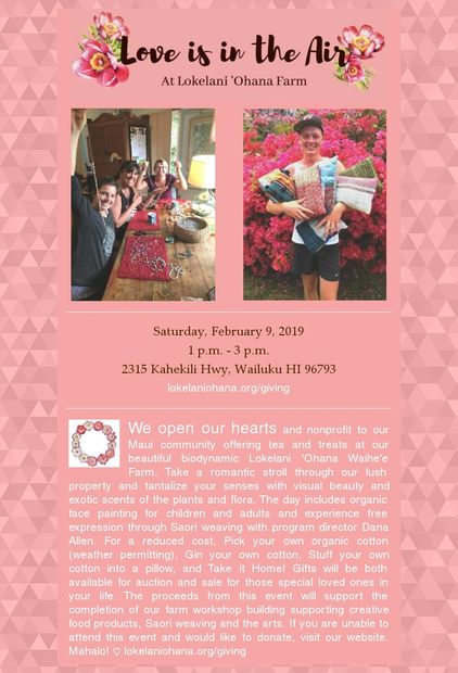 On February 9th 2019 we opened up our hearts to the Waihe'e community with a fundraising event to raise money for our unfinished farm workshop building. We had tea and treats, farm tours and organic items for sale. Attendees enjoyed face painting and henna, and learned about our biodynamic farm and goals of our nonprofit.